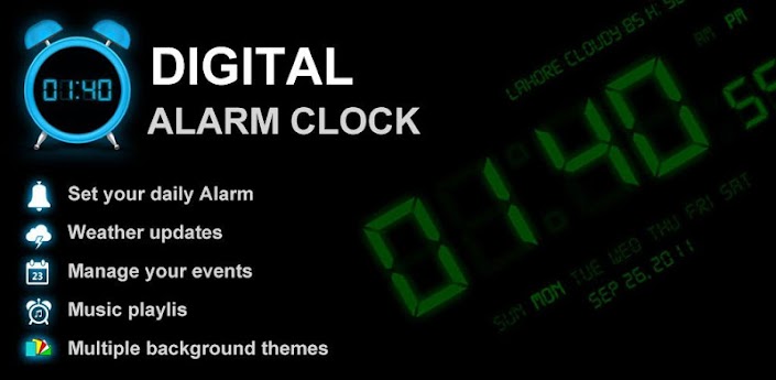 Droid Digital Alarm Clock Pro is a practical application which turns your Android Device into Beautiful Digital Clock, It helps for time management in many ways: