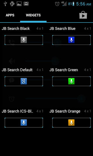 To apply a JB search widget, long-press on your home screen and select the widgets button in the pop-up, then scroll down to J and select the color of your choice (if you are on 3.0/4.0+ the widget menu can be found in your app drawer)
