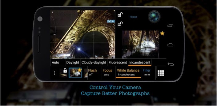 - One tap access to ISO, White Balance, Scene Modes, Focus Modes, and Flash Mode Settings (based on device abilities)