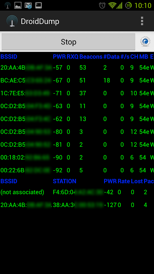 Droid Dump could be a interface for far-famed wireless auditing tool airodump-ng.